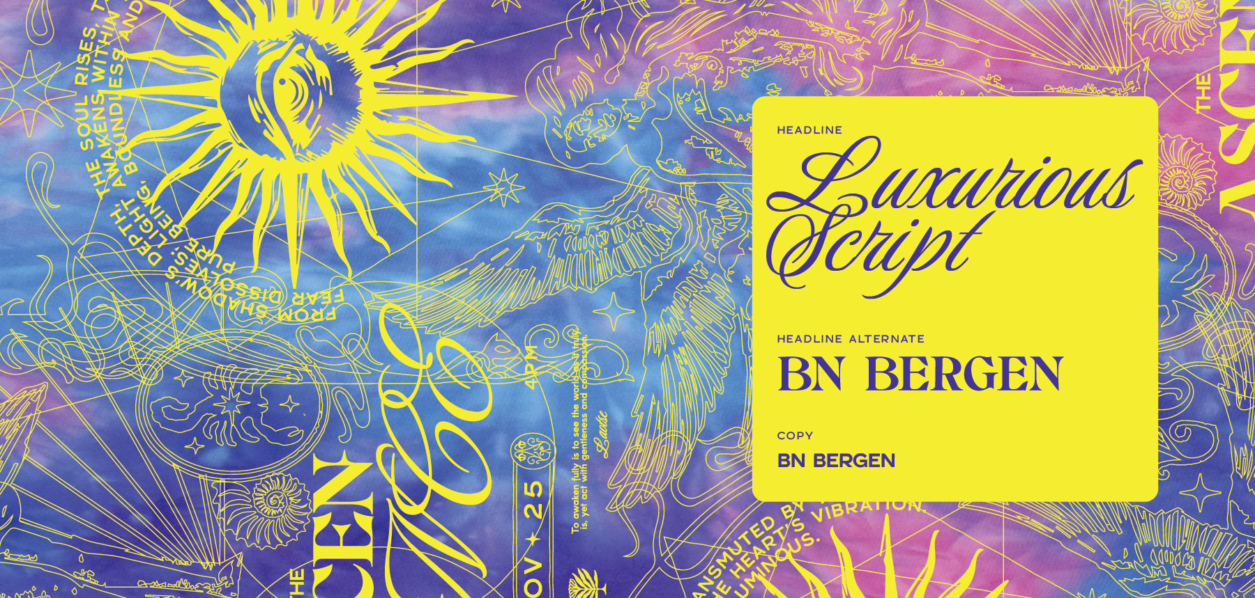 Die Gestaltung arbeitet mit intensiven Farben und extravaganter Typografie, die Wachstum & Entfaltung ausdrücken.